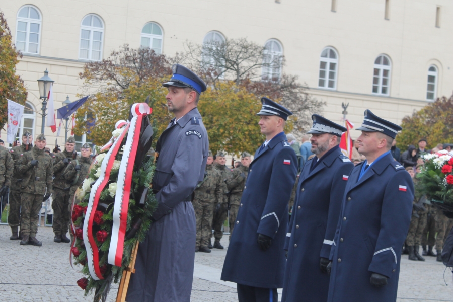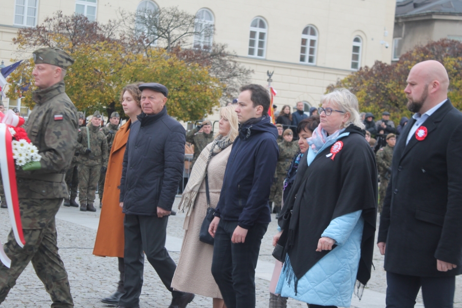 wartości patriotyczne umacniające narodową wspólnotę, tak ważną w sytuacji zagrożenia zewnętrznego . Wiceminister MON Wojciech Skurkiewicz podkreślił, że tegoroczne obchody ŚwiętaNiepodległości w Polsce odbywają się w cieniu regularnej wojny w Ukrainie. Ta wojna jest tragiczna nie tylko dla żołnierzy, ale również dla ludności cywilnej. Wolność trzeba więc pielęgnować w każdej chwili naszego życia, wspominając naszych bohaterów – mówił minister. Dodał, że dzisiaj Polak dla Polaka powinien być przyjacielem, wsparciem, ostoją i orężem w